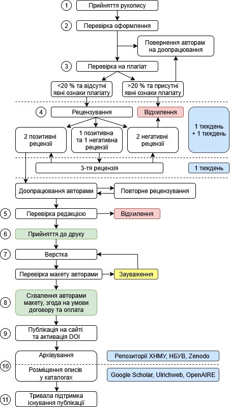 Усі рукописи журналів проходять перевірку на плагіат та подвійне сліпе (анонімне) рецензування.